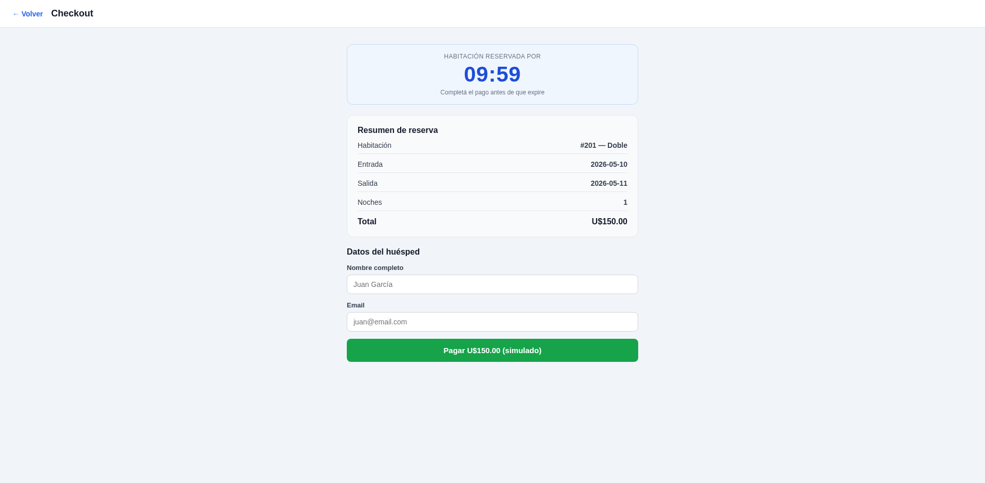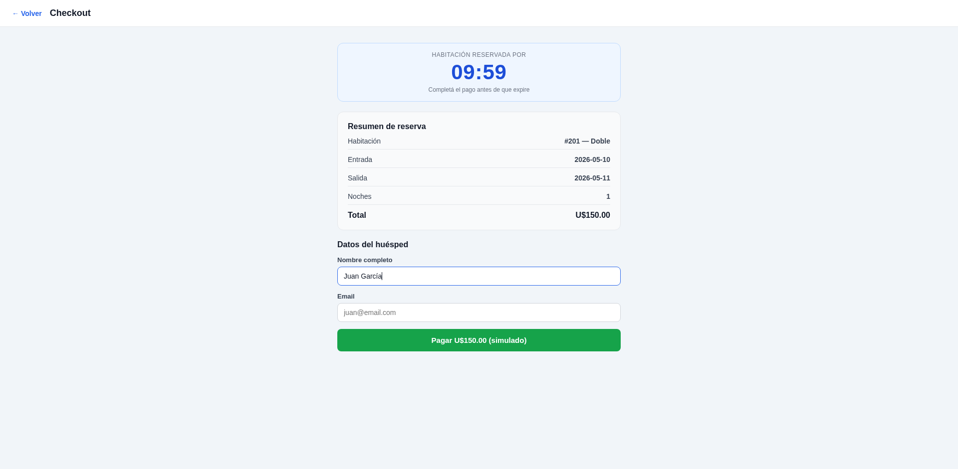 María completa sus datos con nombre '{guestName}' y email '{guestEmail}' y confirma el pago