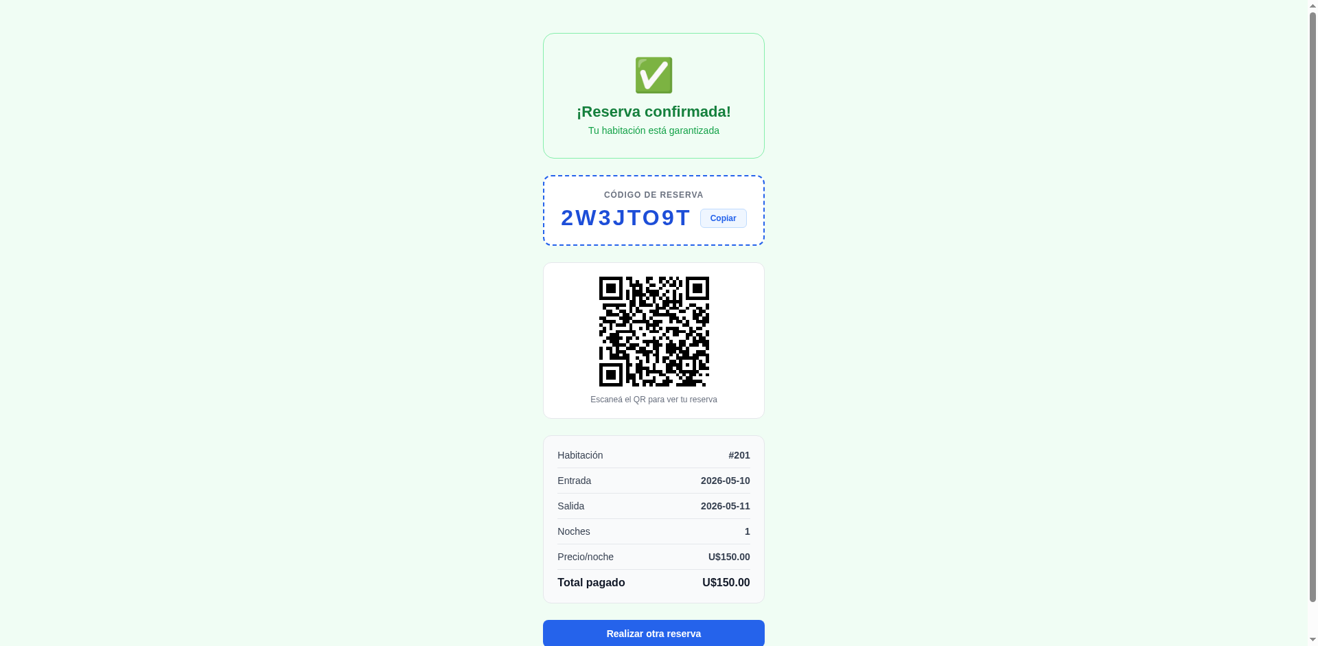 Cuando busca habitaciones del "2026-05-10" al "2026-05-11"